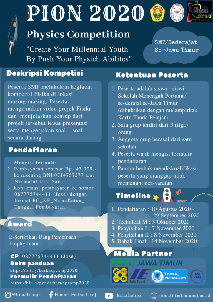 #infolomba #eventsekolah #jawatimur #Lomba2020 #videoprojekfisika #physicscompetition #informasilomba #himafi #unej #physicscarnival2020 #PION2020 #PCSMP2020