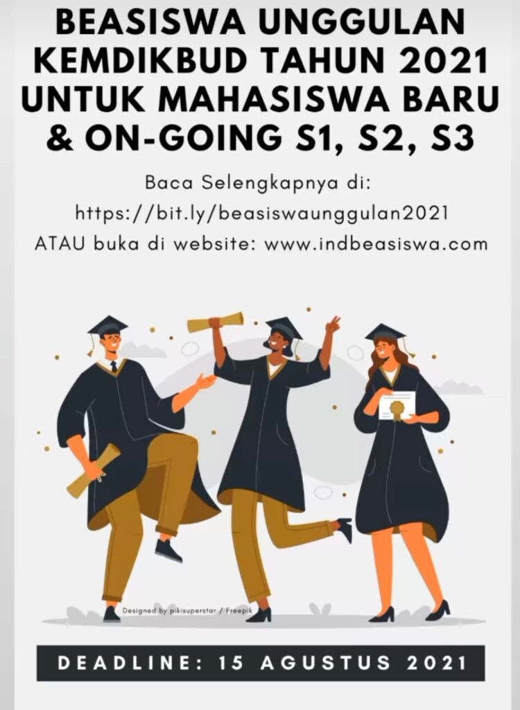 Pendaftaran beasiswa unggulan berakhir pada 15 Agustus 2021, untuk info lebih lanjut bisa klik link berikut https://beasiswaunggulan.kemdikbud.go.id/#/persyaratan