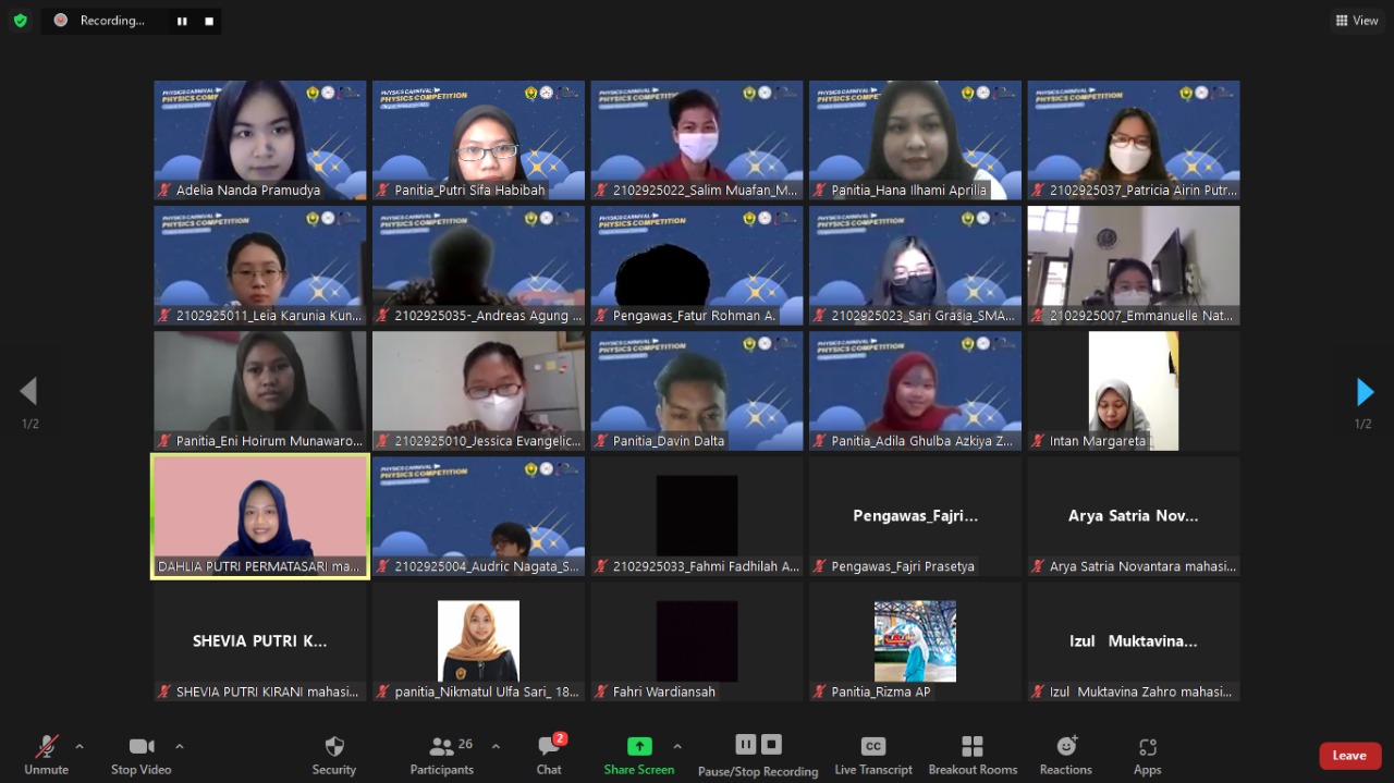 Selamat kepada 10 siswa/siswi yang lolos ke tahap semifinal dan semangat untuk belajar. Babak semifinal PHYSTON 2021 diadakan hari Sabtu 2 Oktober 2021 dan terbagi menjadi 2 sesi. Sesi pertama dimulai dari jam 09.00 – 10.30 WIB dan sesi kedua dimulai dari jam 13.00 – 14.30 WIB.