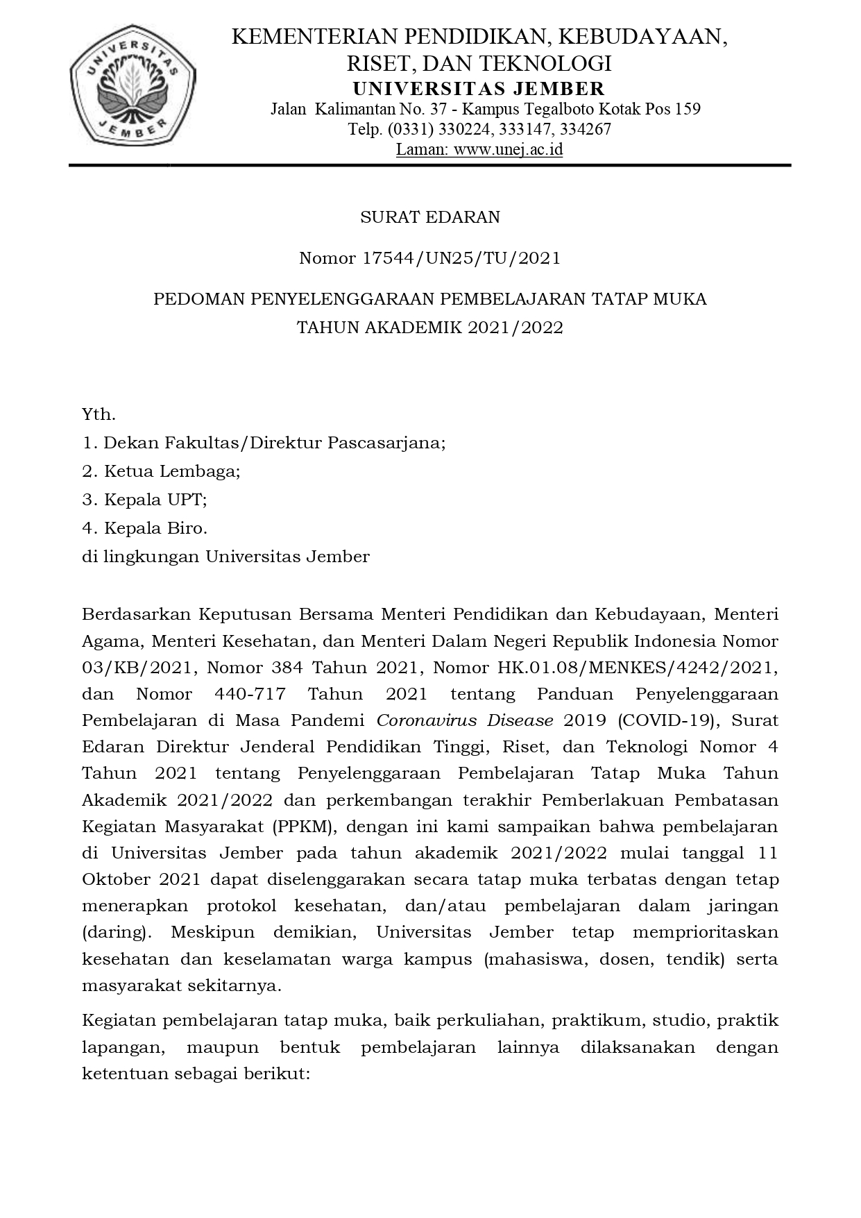 September 28, 2021Physics NewsHIMAFI FMIPA Berikut surat edaran penyelenggaraan pembelajaran tatap muka universitas jember 2021