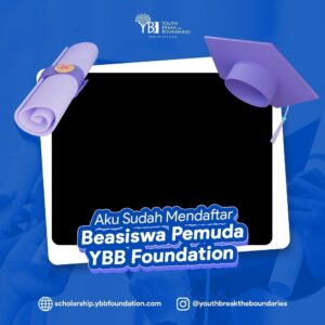 Jangan lupa upload twibbon kamu dan sertakan story kamu di caption “Kenapa kamu mau apply Beasiswa YBB”. Tag kami di @youthbrektheboundaries. Anda dapat mengunduh twibbon di tautan berikut: bit.ly/twibbonBeasiswaPemudaYBB