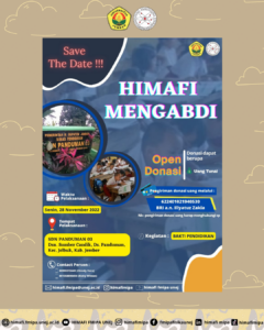 Himafi Mengabdi merupakan acara pengabdian pendidikan yang dilakukan Himpunan Mahasiswa Fisika yang dilakukan di SDN Panduman 03. Let’s join and save the date :